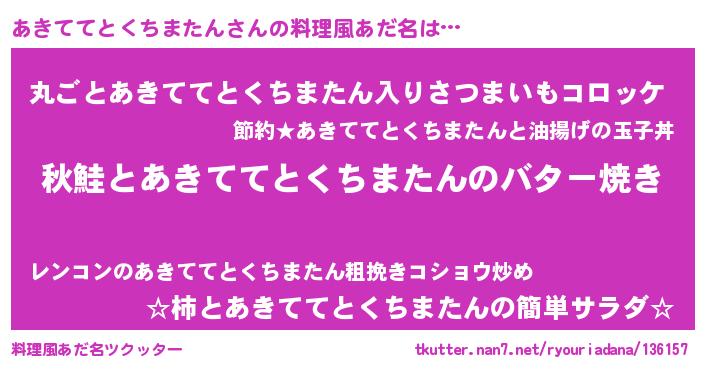 | 男性向けラノベタイトル風あだ名 | 『あきててとくちまたんという概念が存在しない退屈な世界 』 |
