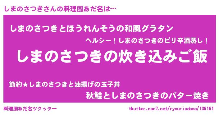| ヘコむあだ名 | 『しまのさつき(笑)』『しまもー』 |