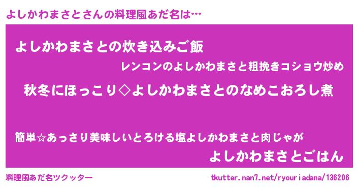 | 意味不明あだ名 | 『ヨモギ科よしかわまさと属』 |