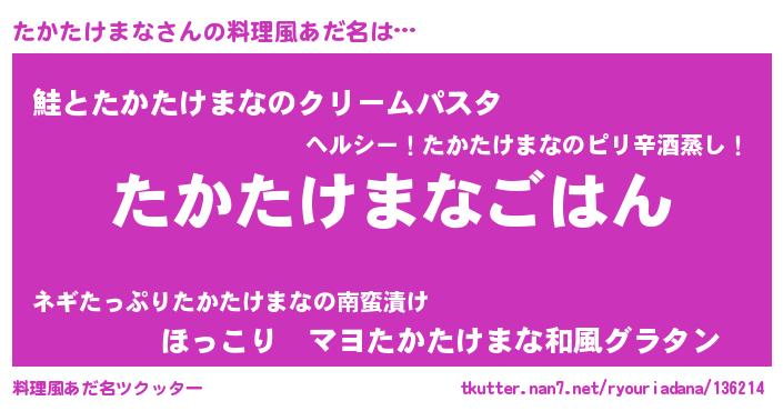 | 男性向けラノベタイトル風あだ名 | 『タカタケマナスレイヤー』 |