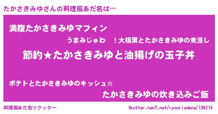 | ヘコむあだ名 | 『たかにゅー』『たかさきみゆ(笑)』 |