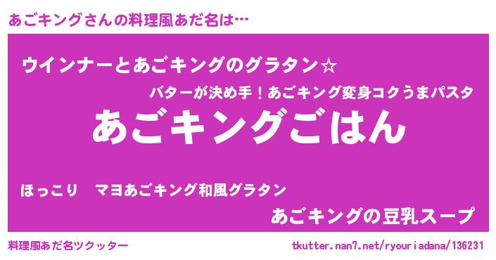 | 男性向けラノベタイトル風あだ名 | 『転生したらあごキングだった件』 |