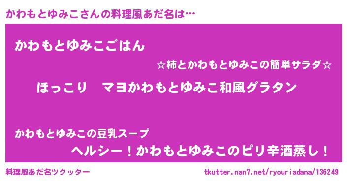 | ヘコむあだ名 | 『かわっぺ』『かわもとゆみこ(笑)』 |