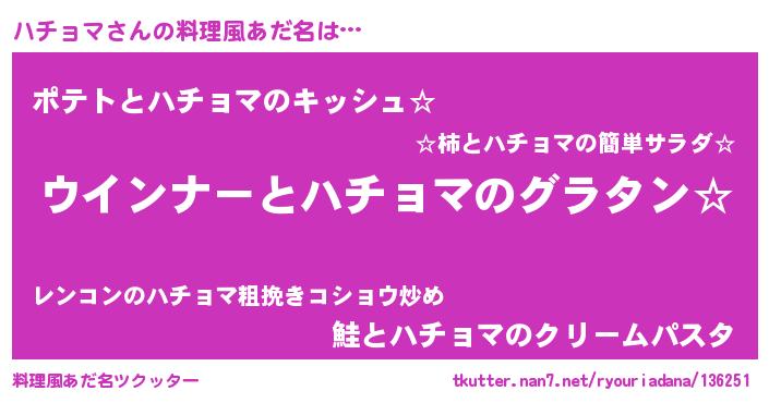 | ポケモン風あだ名 | 『ハチョダネ』『ヒハチョマ』 |