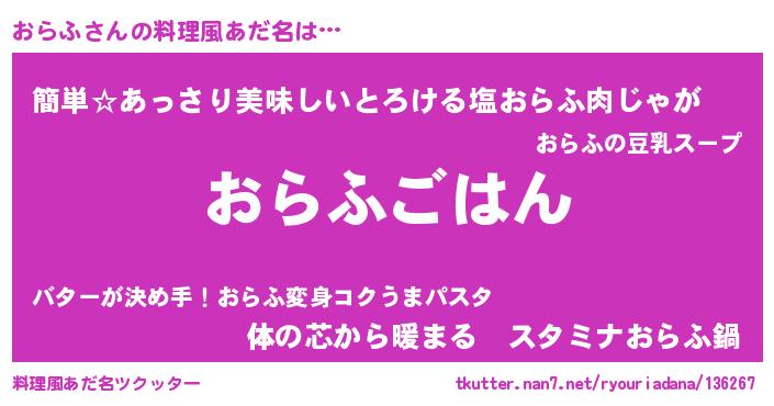 | ヘコむあだ名 | 『おらふ(爆)』『酢こんぶ』『おらお』 |