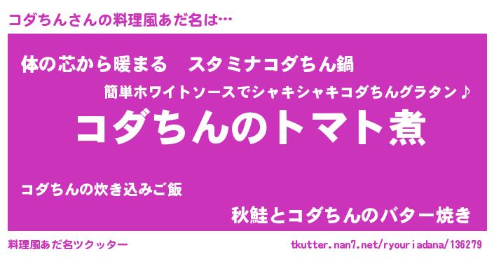 | ヒーロー風カッコイイあだ名 | 『正義の使者コダちん』『ネオコダチン』 |