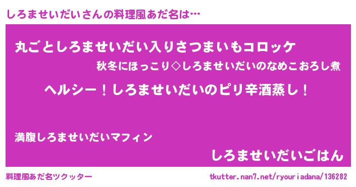 | 胡散臭い通販商品みたいなあだ名 | 『芸能人もオススメする高麗人参…その名も「しろませいだい」』 |