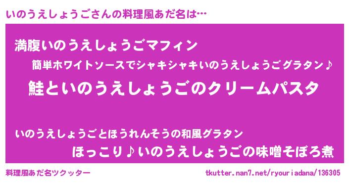 | ヘコむあだ名 | 『いのうえしょうご(笑)』『いのにゅー』 |