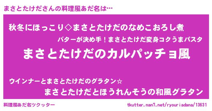 | 意味不明あだ名 | 『住所不定無職まさとたけだ(62歳)』 |