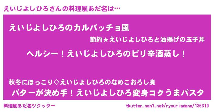 | ヘコむあだ名 | 『えいっふぃ~』『えいじよしひろ(笑)』 |
