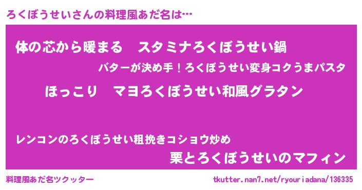 | ヘコむあだ名 | 『酢こんぶ』『ろくお』 |