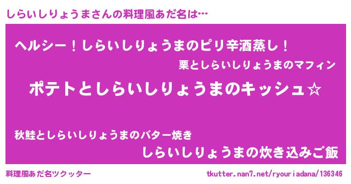 | ポケモン風あだ名 | 『ヒシライシリョウマ』『シラセウス』 |