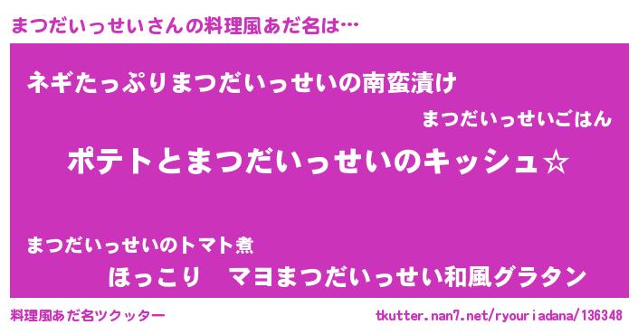 | 意味不明あだ名 | 『とにかく怪しいまつだいっせい』 |