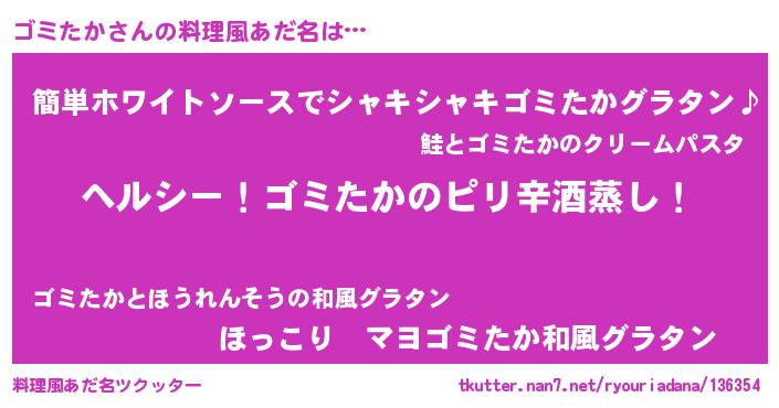 | 意味不明あだ名 | 『自称ゴミたか』『もやし科ゴミたか属』 |