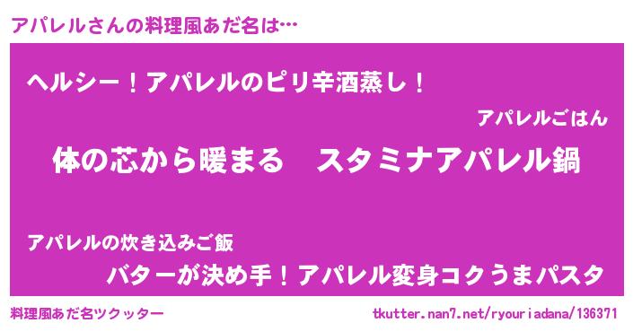 | 可愛いあだ名 | 『アパちー』『アパうちぇる』 |