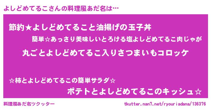 | 意味不明あだ名 | 『住所不定無職よしどめてるこ(59歳)』 |