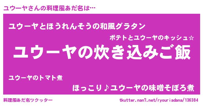 | ヒーロー風カッコイイあだ名 | 『スーパーユウーヤ』『銀牙騎士ユウ』 |