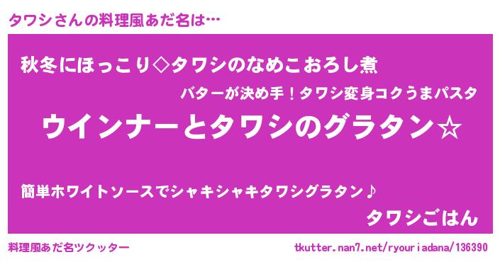 | ポケモン風あだ名 | 『タワシダネ』『タワゴンZ』 |