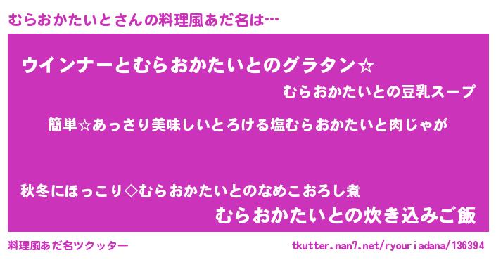| ヘコむあだ名 | 『むらおかたいと(小並感)』『なまこ酢』 |