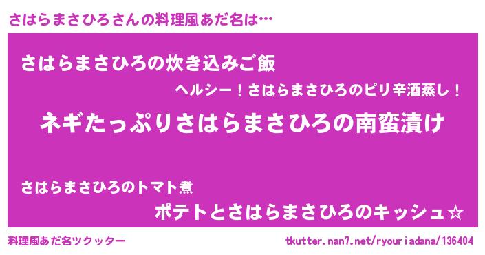 | 胡散臭い通販商品みたいなあだ名 | 『億万長者になれるブレスレット…その名も「さはらまさひろ」』 |