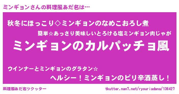 | ヘコむあだ名 | 『ミンギョン(笑)』『豆乳』 |