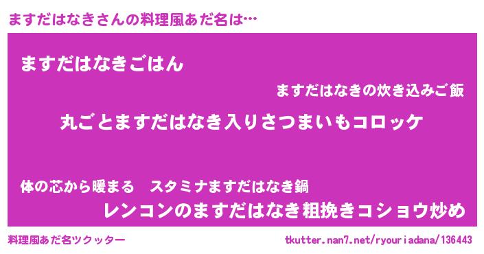 | 意味不明あだ名 | 『住所不定無職ますだはなき(81歳)』 |