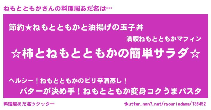 | 胡散臭い通販商品みたいなあだ名 | 『必ず成功する霊験あらたかなお札…その名も「ねもとともか」』 |