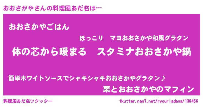 | 男性向けラノベタイトル風あだ名 | 『やはりおおさかやの青春ラブコメはまちがっている 』 |