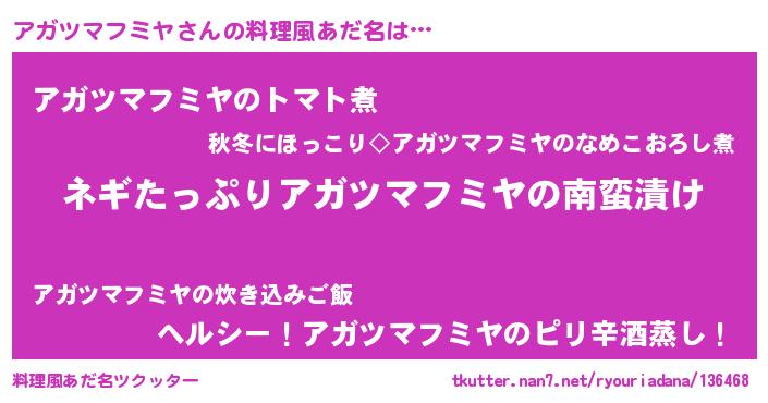 | 男性向けラノベタイトル風あだ名 | 『アガツマフミヤアートオンライン』 |