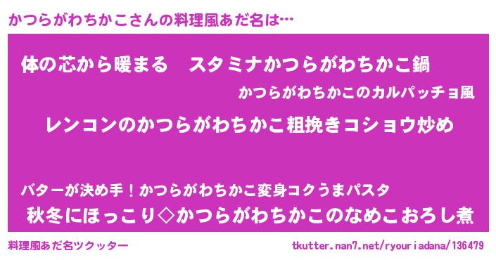 | 胡散臭い通販商品みたいなあだ名 | 『ガンによく効くアガリクス…その名も「かつらがわちかこ」』 |
