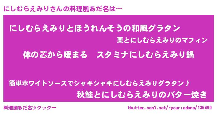 | 肩書あだ名 | 『にしむらえみり総理大臣』 |