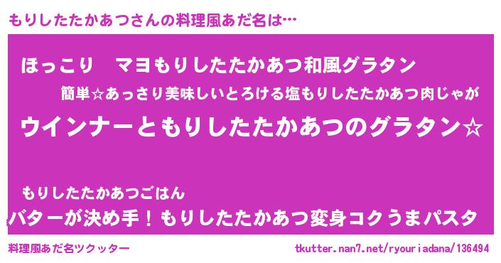| ヘコむあだ名 | 『なまこ酢』『もりしたたかあつ(震え声)』 |