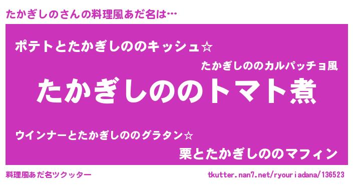 | ピコ太郎風あだ名 | 『タタ太郎』『タカ四郎』『ピタ六郎』 |
