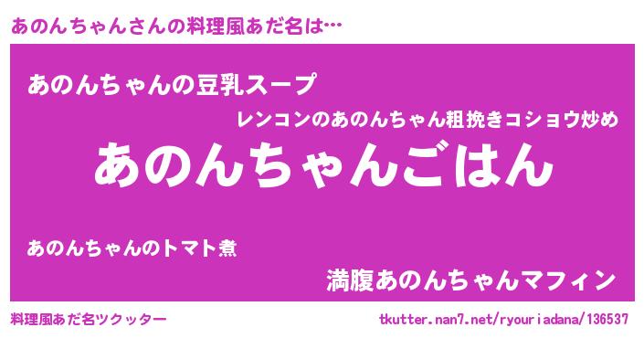 | 肩書あだ名 | 『あのんちゃん少将』『あのんちゃん校長』 |