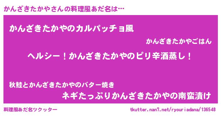 | 男性向けラノベタイトル風あだ名 | 『Re:かんざきたかやから始める異世界生活』 |