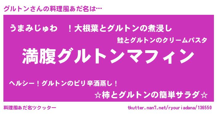 | 男性向けラノベタイトル風あだ名 | 『グルトンという概念が存在しない退屈な世界 』 |