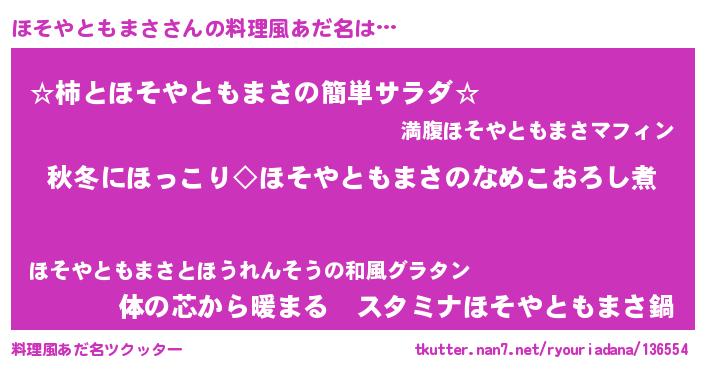 | 意味不明あだ名 | 『ほそやともまさフォーエバー』 |