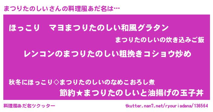 | 女子向けラノベタイトル風あだ名 | 『まつりたのしいなんてお断りですっ。』 |
