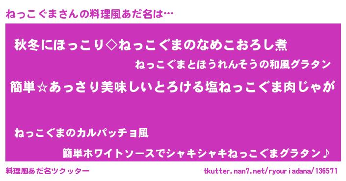 | ヘコむあだ名 | 『ねっこぐま(笑)』『ねっっちょ』 |