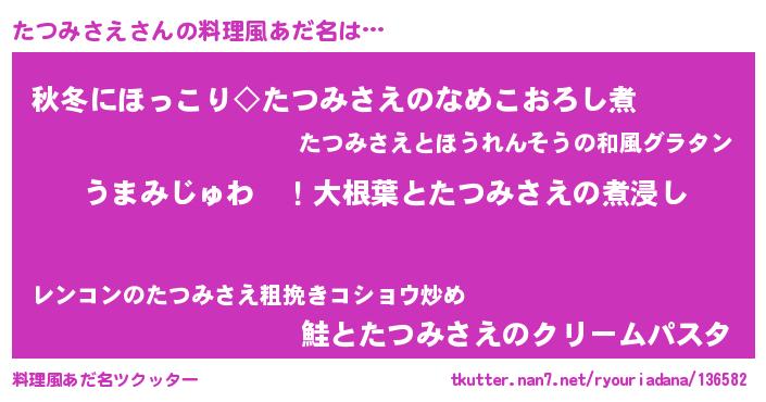 | ヘコむあだ名 | 『酢こんぶ』『たつみさえ(笑)』 |