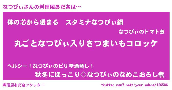 | 意味不明あだ名 | 『住所不定無職なつぴぃ(85歳)』 |