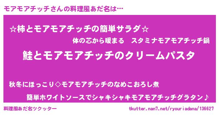 | ヒーロー風カッコイイあだ名 | 『天空の使者モアモアチッチ』 |