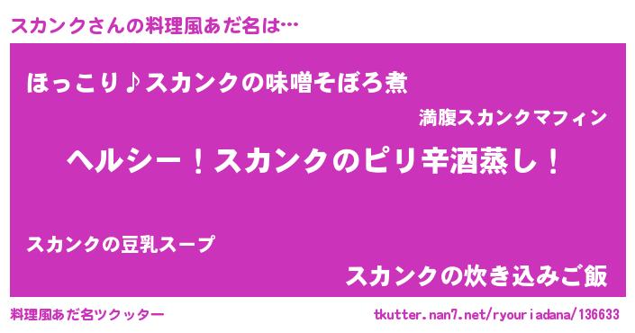 | 意味不明あだ名 | 『自称スカンク』『ペロリンスカンク』 |
