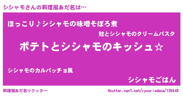 | 女子向けラノベタイトル風あだ名 | 『シシャモの卵を拾いまして』 |