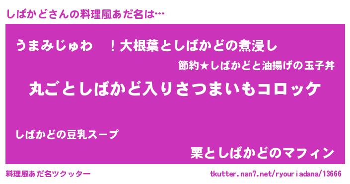 | 2回繰り返すあだ名 | 『しわしわ』『ししばば』『しばしば』 |