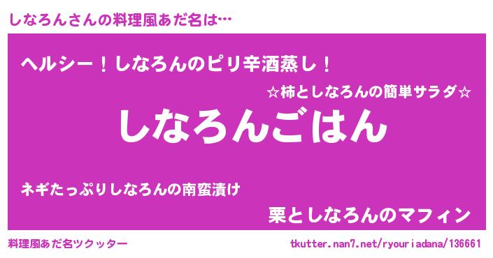 | 意味不明あだ名 | 『しいたけ科しなろん属』『自称しなろん』 |