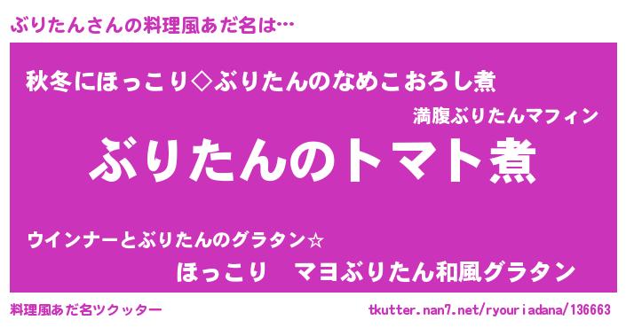 | ヘコむあだ名 | 『ぶりたん(苦笑)』『なまこ酢』 |