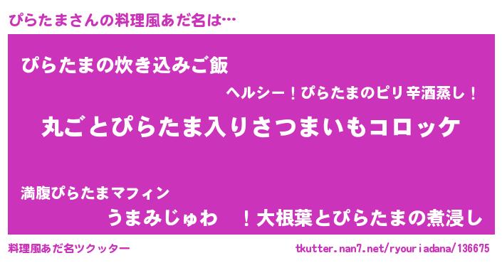 | ヒーロー風カッコイイあだ名 | 『仮面ピラダー』『ウルトラぴらたまマン』 |