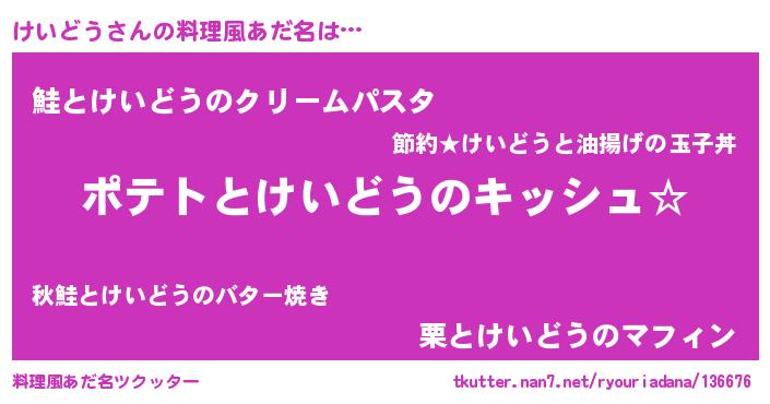 | ヒーロー風カッコイイあだ名 | 『魔戒騎士ケイ』『愛の使者けいどう』 |