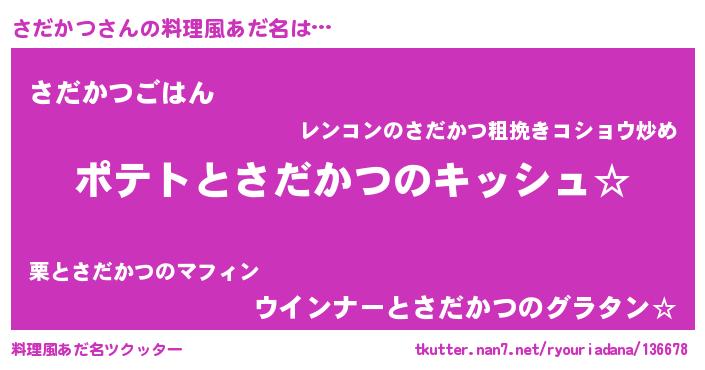 | 女子向けラノベタイトル風あだ名 | 『さだかつの卵を拾いまして』 |